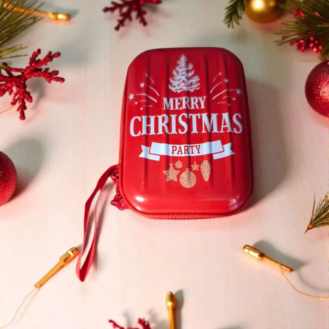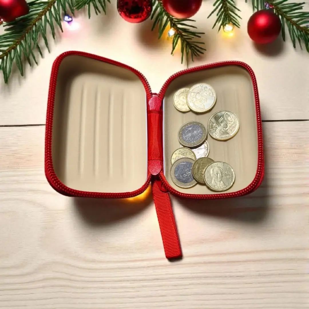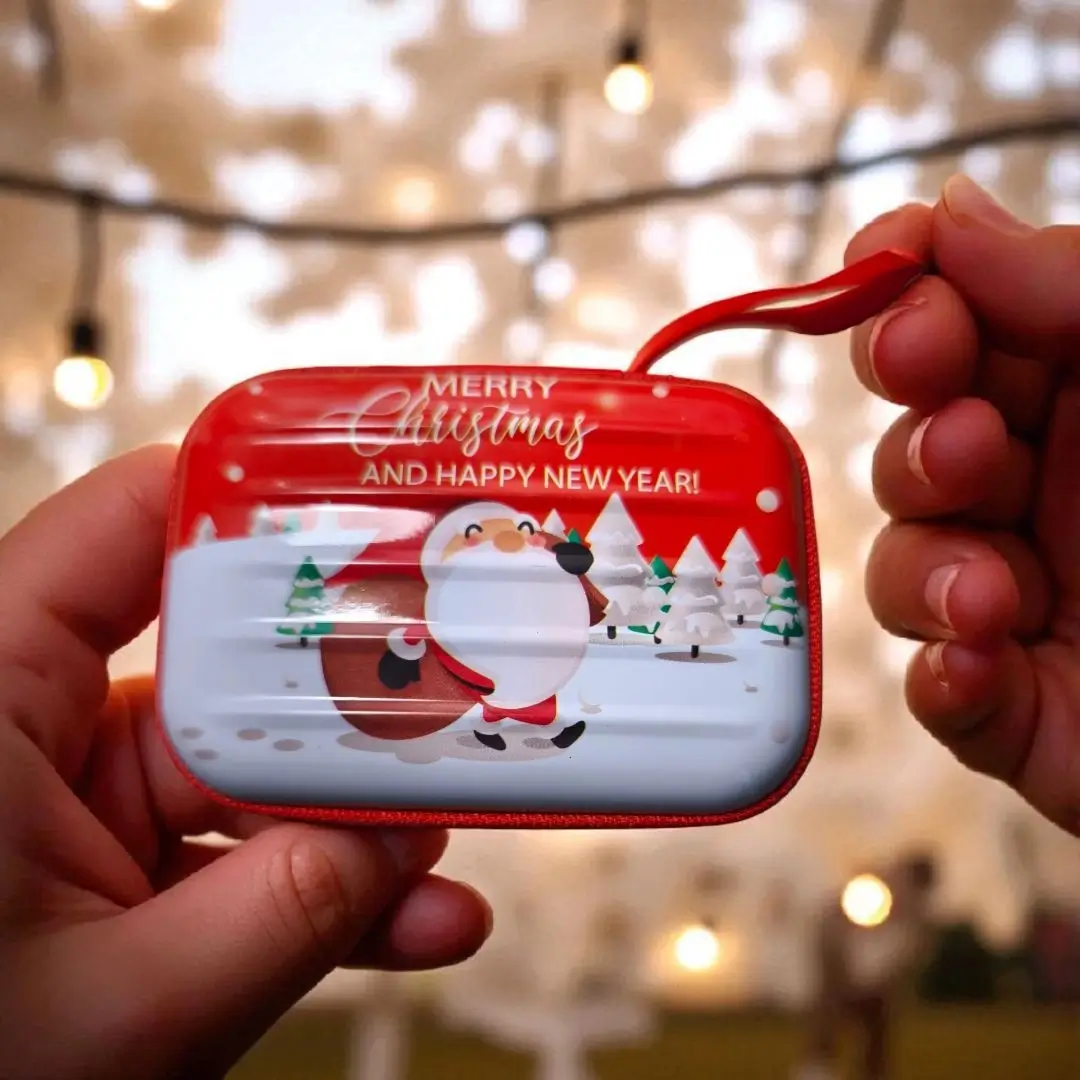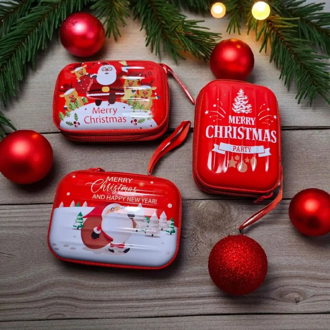 Χριστουγεννιάτικο μεταλλικό πορτοφολάκι διαστάσεων 10 × 6 × 2,5 cm. Ένα όμορφο και πρακτικό δωράκι που χωράει κέρματα ή μικροαντικείμενα και ταιριάζει σε κάθε γιορτινή περίσταση.